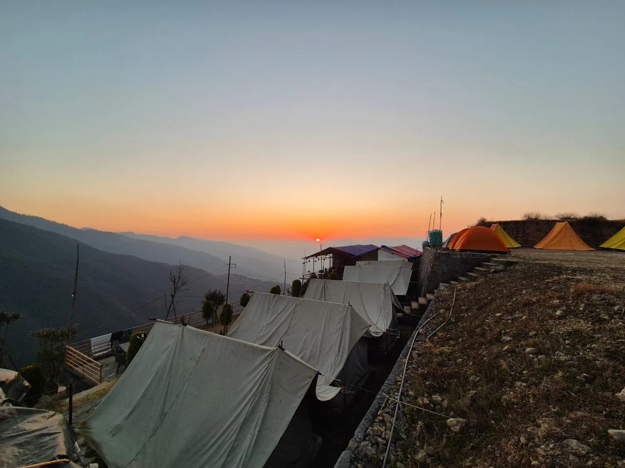 Chopta Tungnath Chandrashila trek distance is approx 5 kms.Wake up very early morning to reach the summit on time to see the panoramic view of the high Himalayan peaks. The trek is mostly a gradual ascent through the dwarf rhododendron bushes. You can watch most of the prominent peaks of the Garhwal Himalayas from Chandrashila Top. Nanda Devi (7817Mtrs-the second highest peak of Indian Himalayas), Kedarnath, Trishul, Bandarpoonch etc are the prominent peaks visible from here. Explore the area and trek back to the camp at Chopta. Dinner and overnight stay in camp.